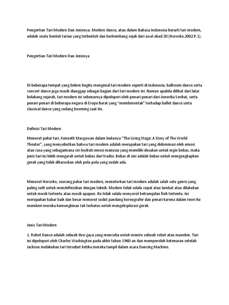 Pengertian Tari Modern Dan Jenisnya