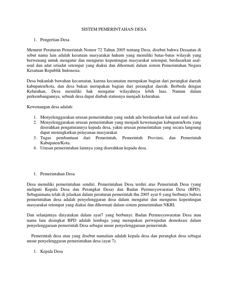 DOC) MEMAHAMI SISTEM PEMERINTAHAN DESA .docx | Alfinanta …