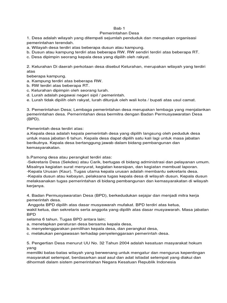 Struktur Pemerintahan Desa Menurut Uu No 32 Tahun 2004 - Berbagai …