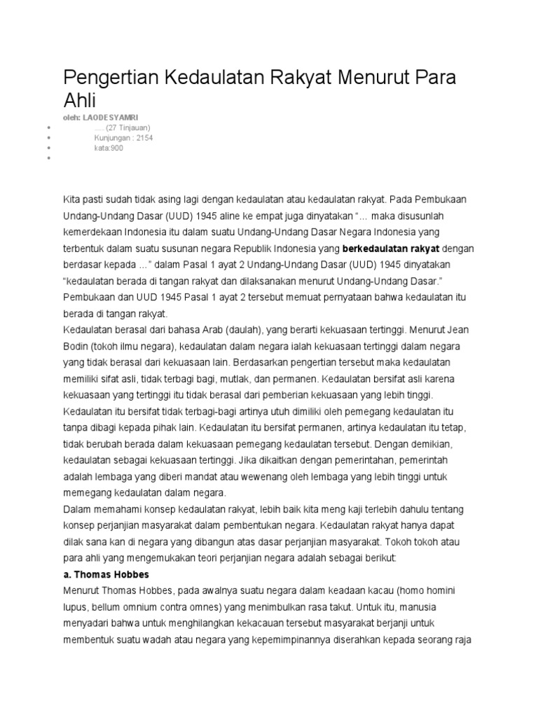 Pengertian Kedaulatan Rakyat Menurut Para Ahli