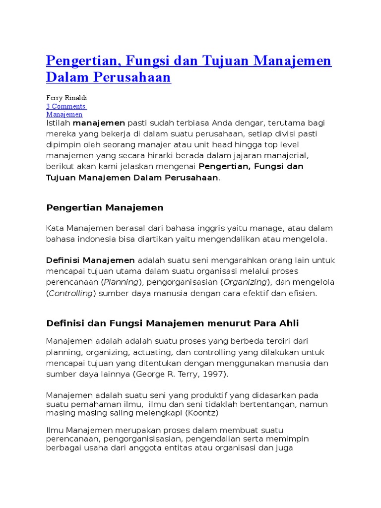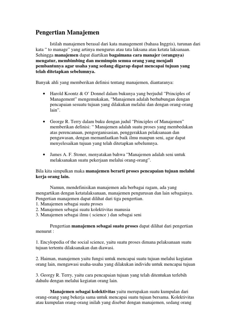 DOC) Engertian Pengantar Manajemen Menurut Para Ahli | Widyana …