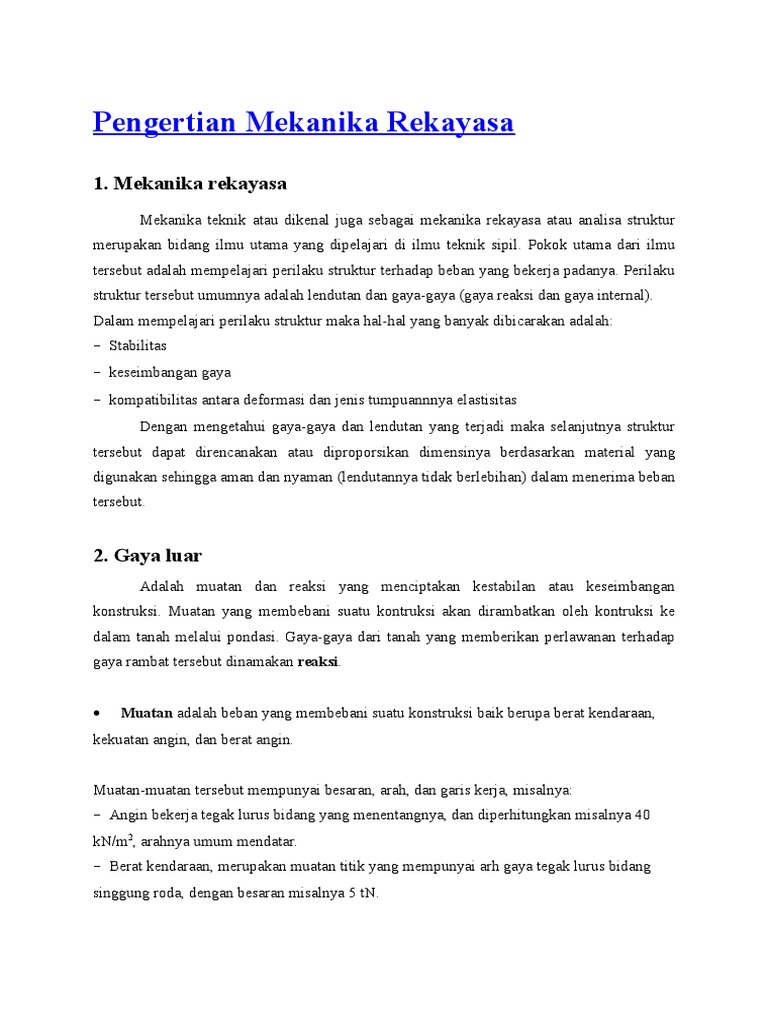 Pengertian Mekanika Rekayasa - 5 kumpulan materi soal dan jawaban belajar online