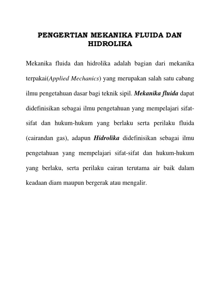 Pengertian Mekanika Fluida Dan Hidrolika - [PDF Document]