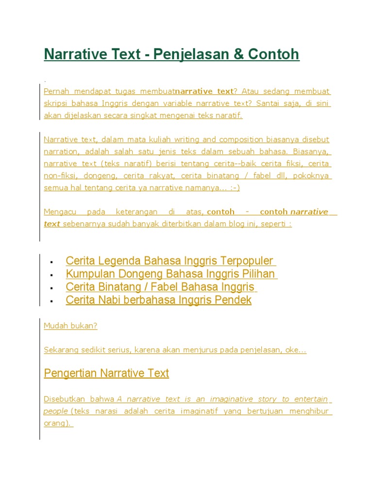 PENGERTIAN NARATIVE TEXT | Muhammad Khoirurrofiq - Academia.edu