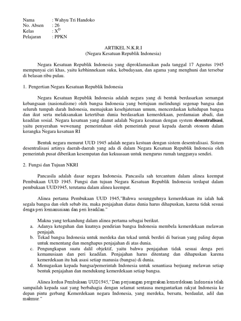DOC) NKRI Adalah ?, Pengertian, Tujuan dan Fungsi NKRI Lengkap …
