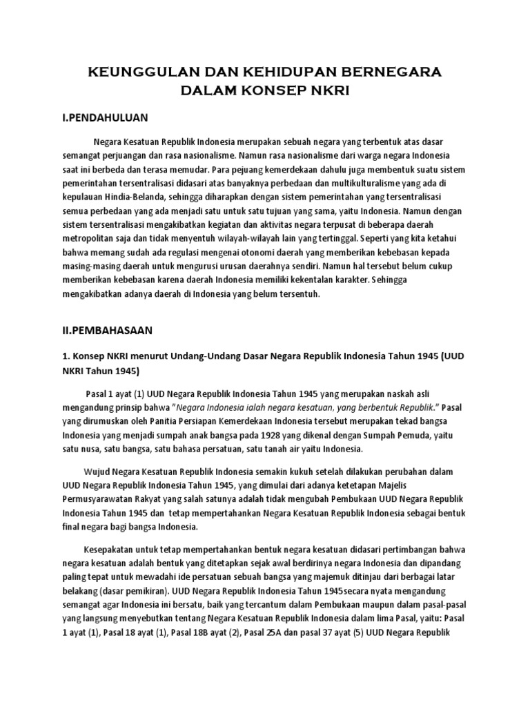 Keunggulan Dan Kehidupan Bernegara Dalam Konsep Nkri