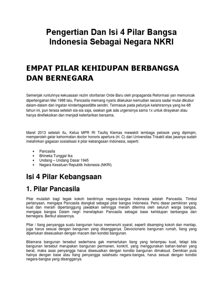 Pengertian Dan Isi 4 Pilar Bangsa Indonesia Sebagai Negara NKRI