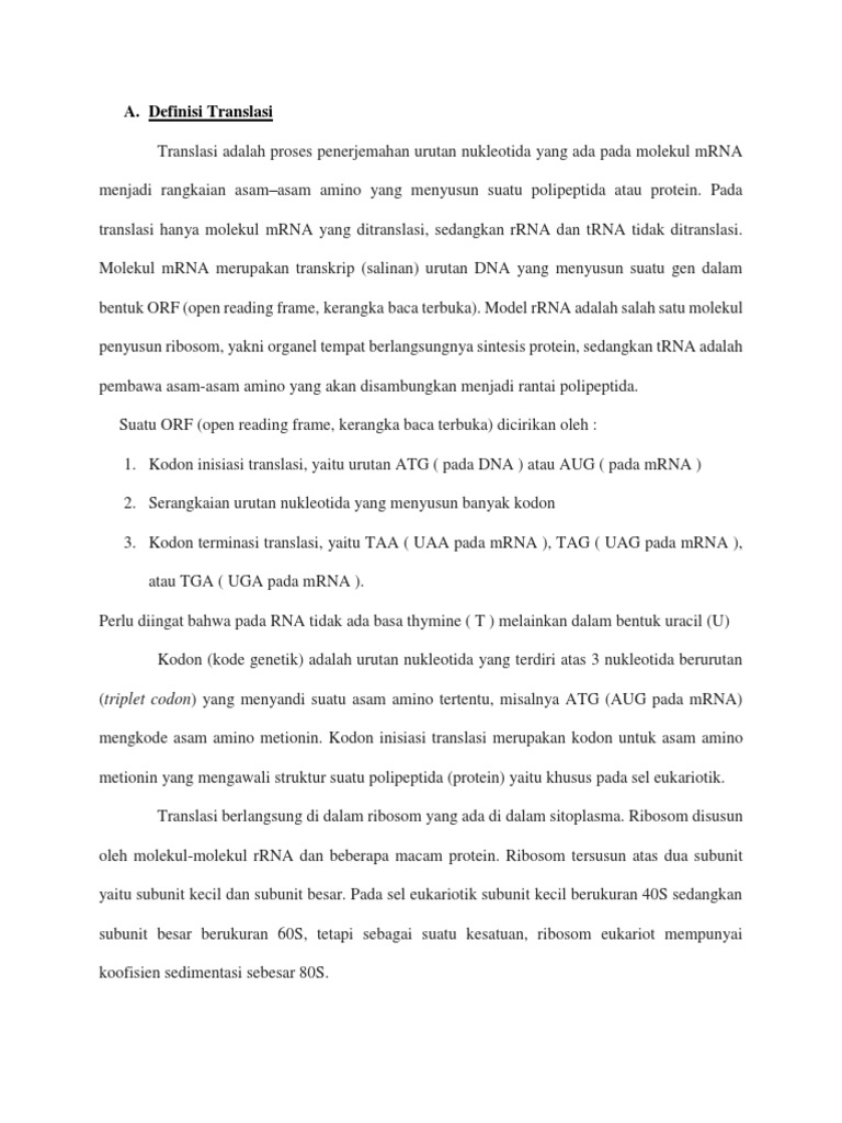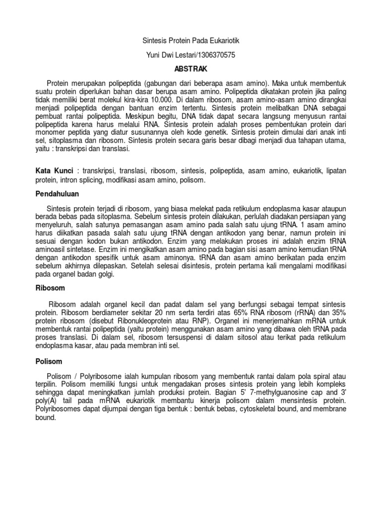 makalah biologi sintesis protein.docx - BAB I PENDAHULUAN A Latar …