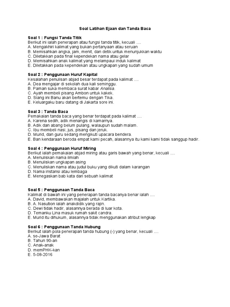 Contoh Soal Dan Pembahasan Ejaan Tanda Baca Yang Benar - Cara …