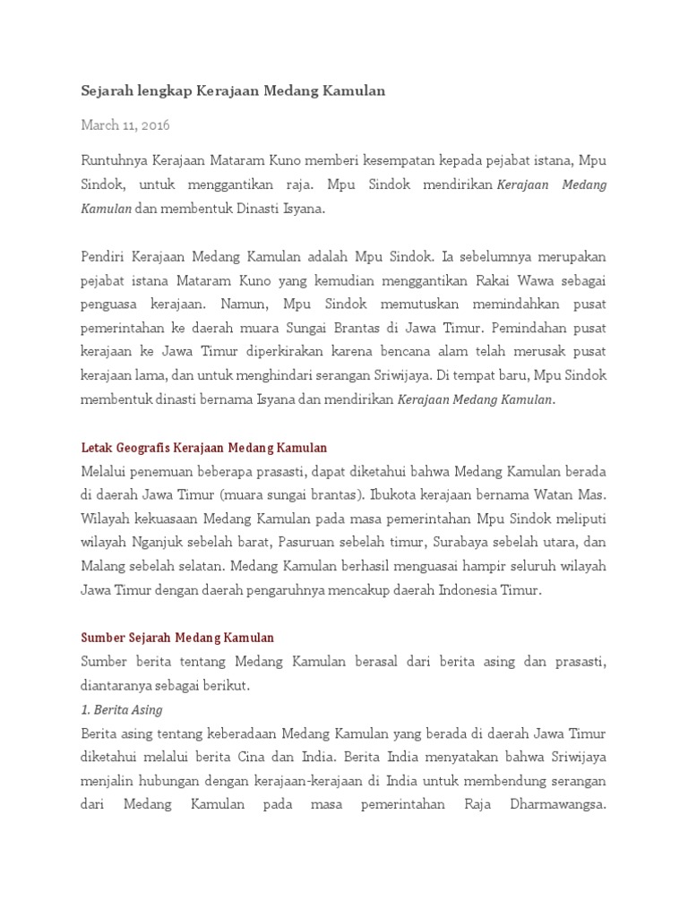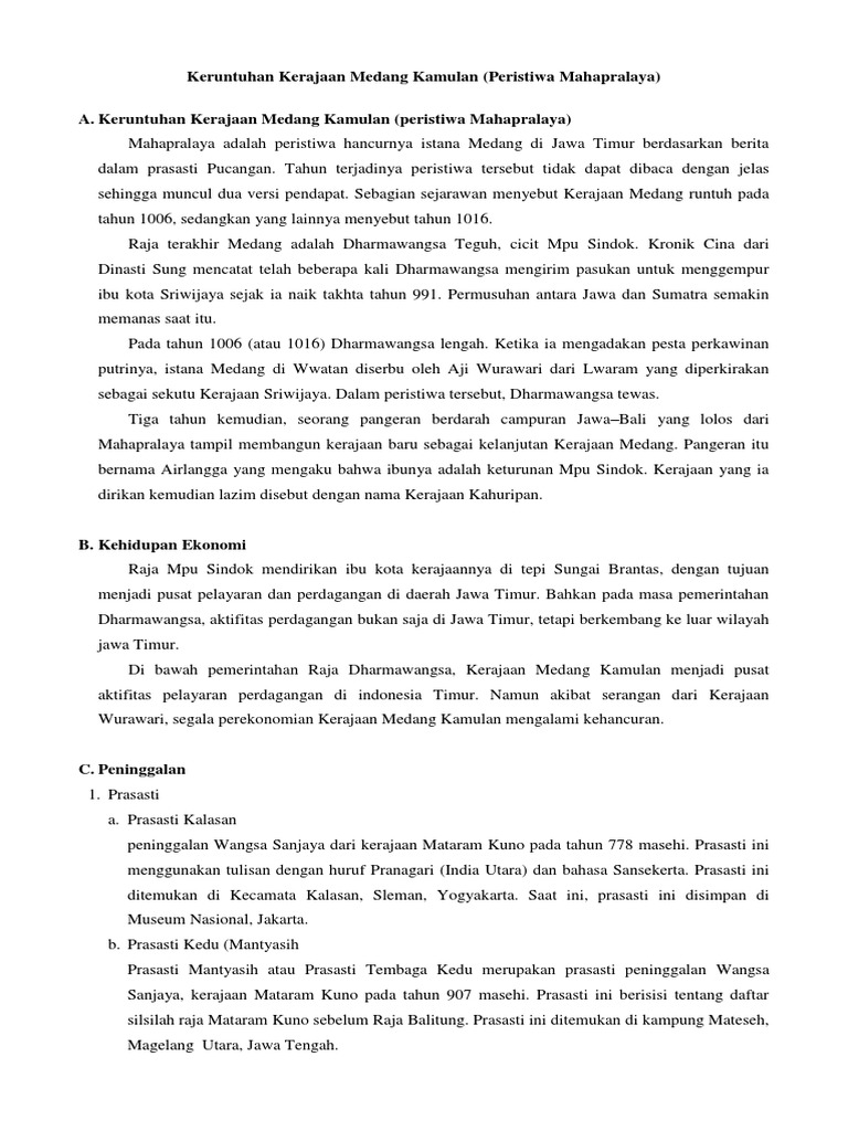 Apa penyebab runtuhnya kerajaan Medang Kamulan? - Brainly.co.id