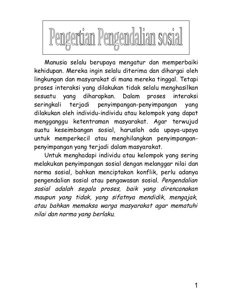 DOC) KONTROL SOSIAL atau PENGENDALIAN SOSIAL | Rica Fajar riani …