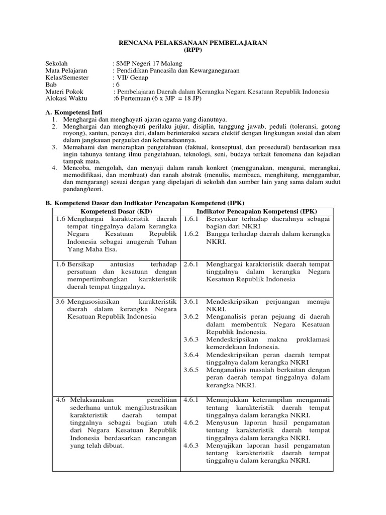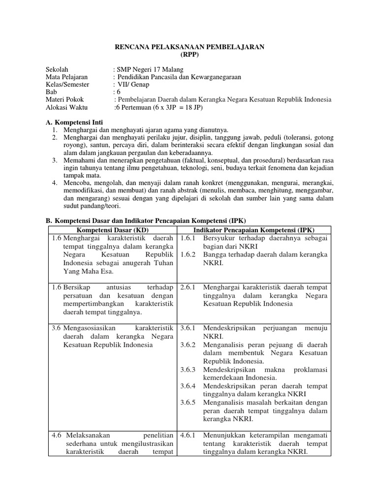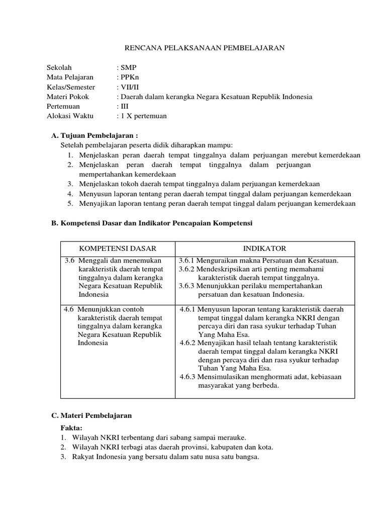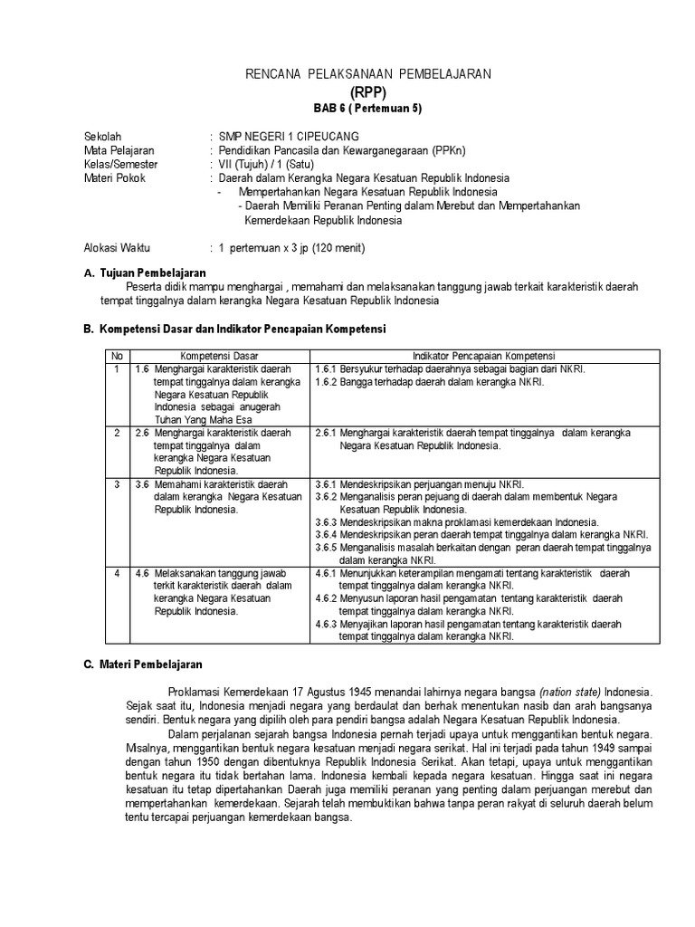 RPP PKN Kelas VII Kurikulum 2013 Bab v