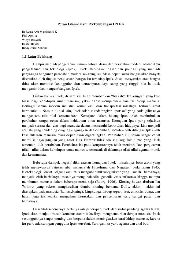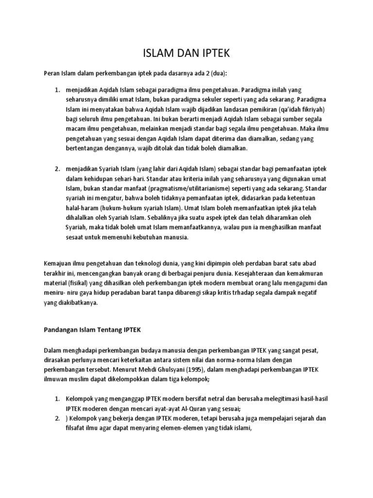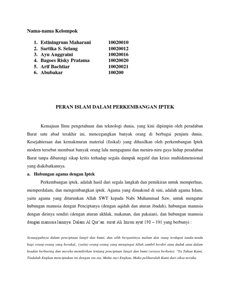 DOC) Peran Islam dalam Perkembangan IPTEK | lusi amaliah …