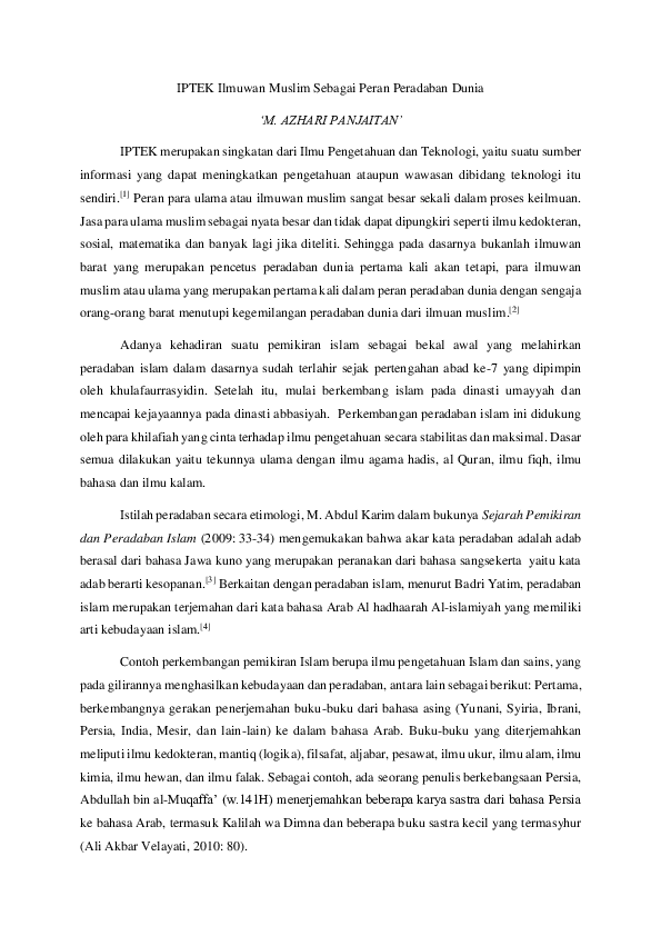 DOC) Iptek dan Peradaban Islam | Chichi ‘Aisyatud Da’watiz Zahroh …