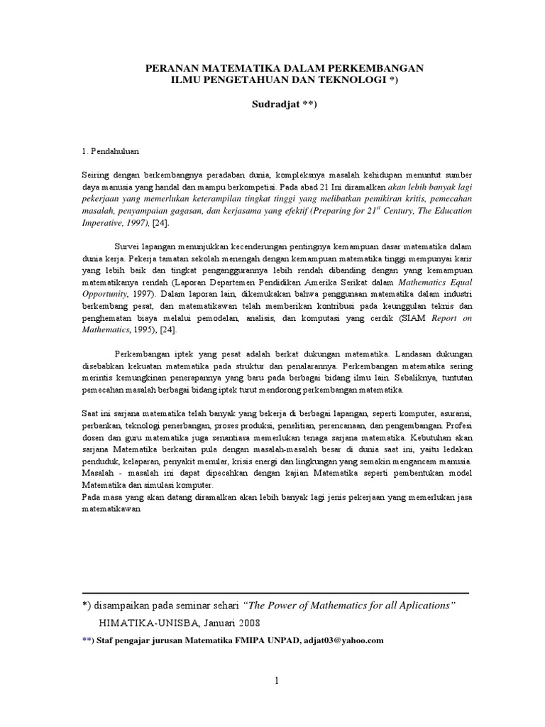 Peranan Matematika Dlm Perkembangan Iptek