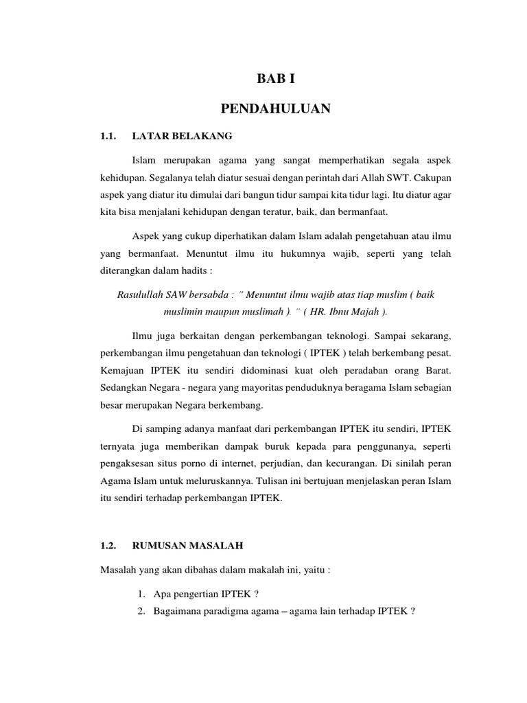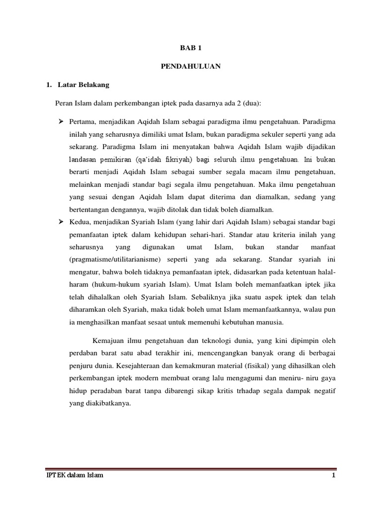 Bab 1 Pendahuluan 1. Latar Belakang: IPTEK dalam Islam 1