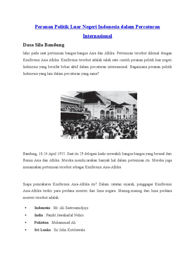 Berilah contoh peranan politik luar negeri Indonesia dalam …