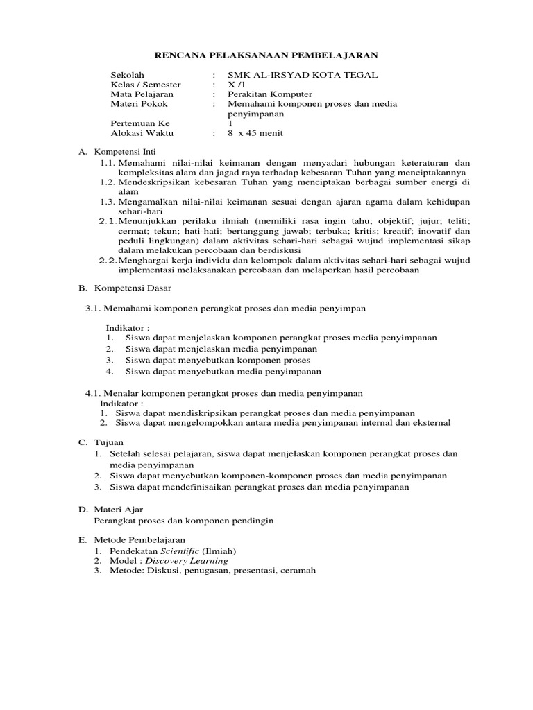 DOC) 4. RPP Perangkat proses dan komponen pendingin.docx | Fanny …