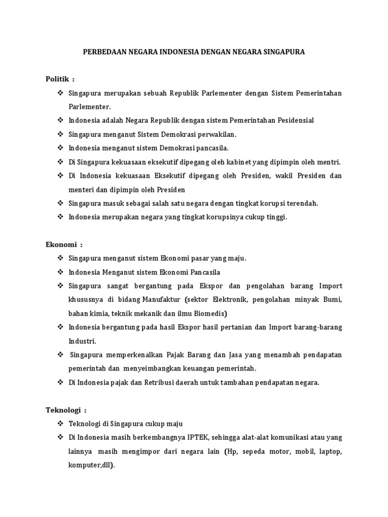 Perbedaan Negara Indonesia Dengan Negara Singapura – Kamus