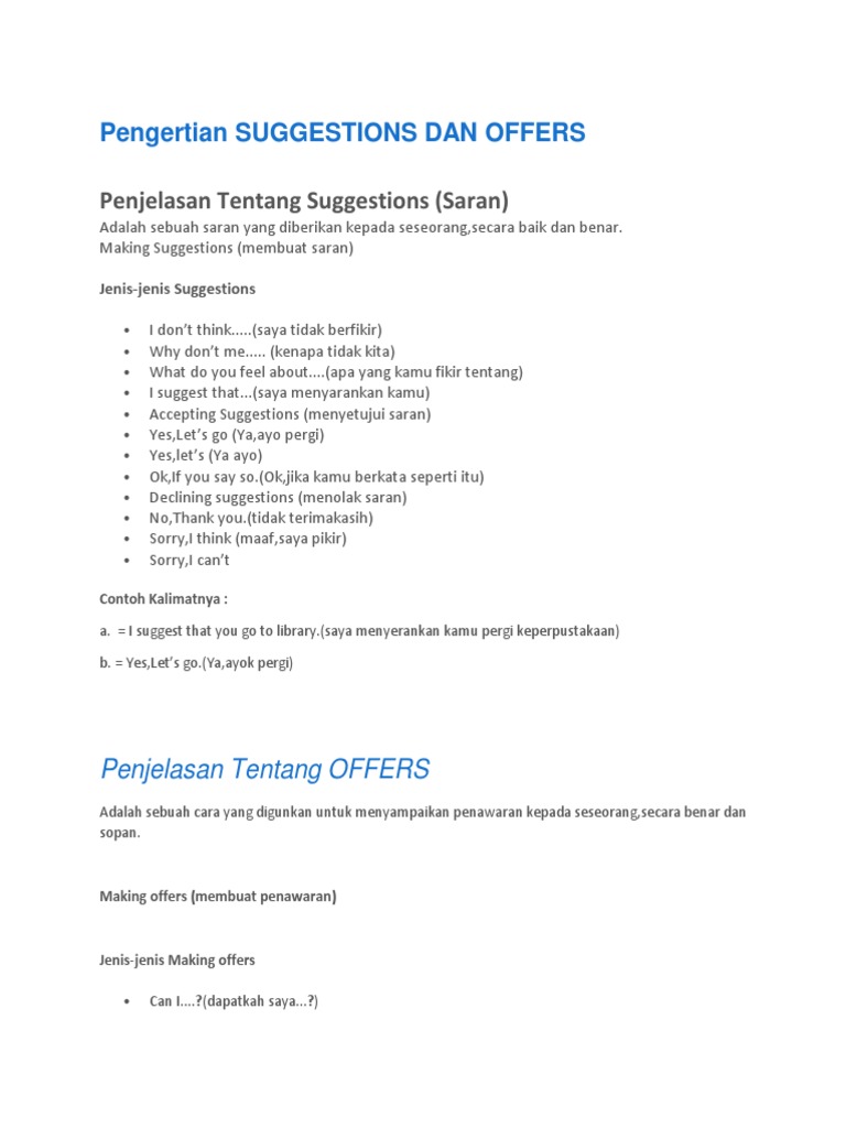 Penjelasan Tentang Suggestions Dan Offers Lengkap Dengan Contoh …