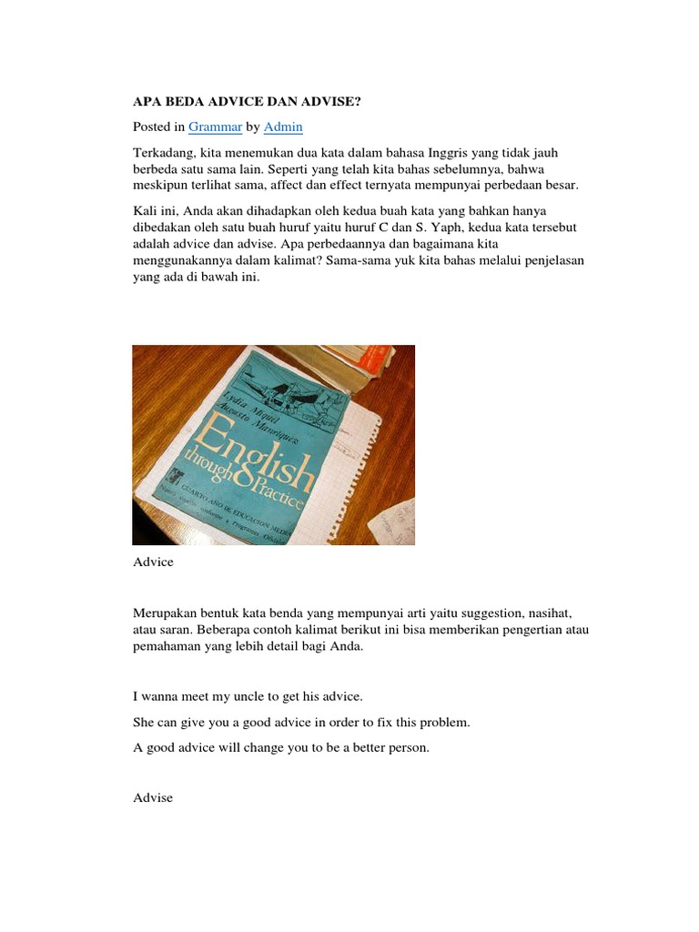 Perbedaan Advice Dan Advise - Kampung Inggris Pare