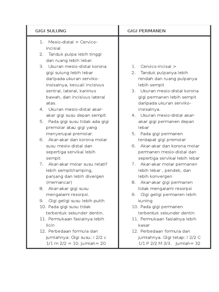 Kriteria Perbedaan Gigi Sulung Dan Permanen