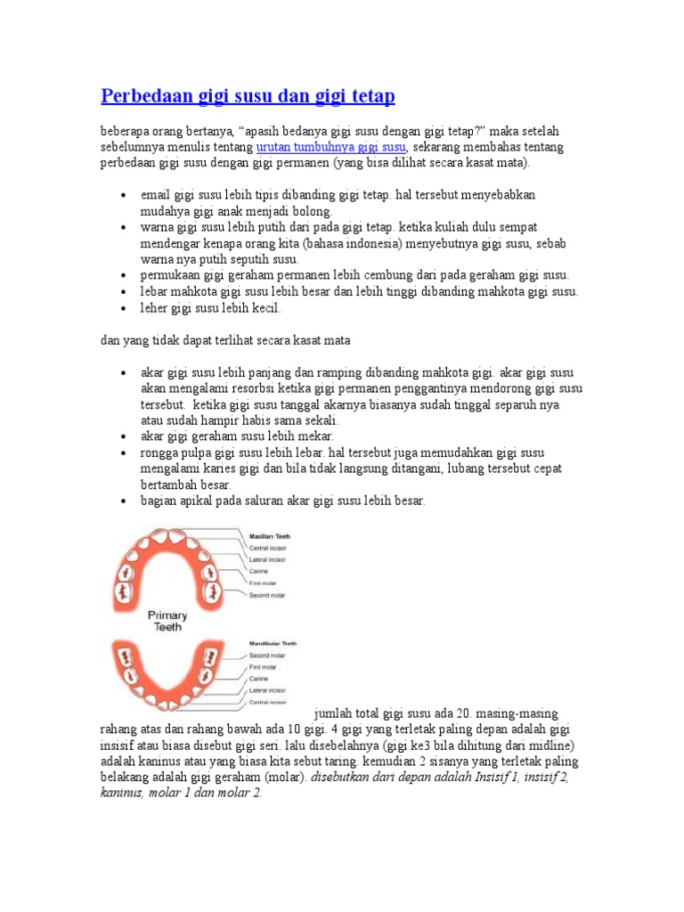 Perbedaan Gigi Susu Dan Gigi Prmanent - [DOC Document]
