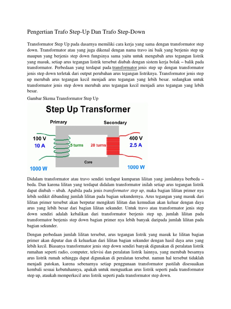 Jelaskan Perbedaan Antara Trafo Step Up Dengan Trafo Step Down …