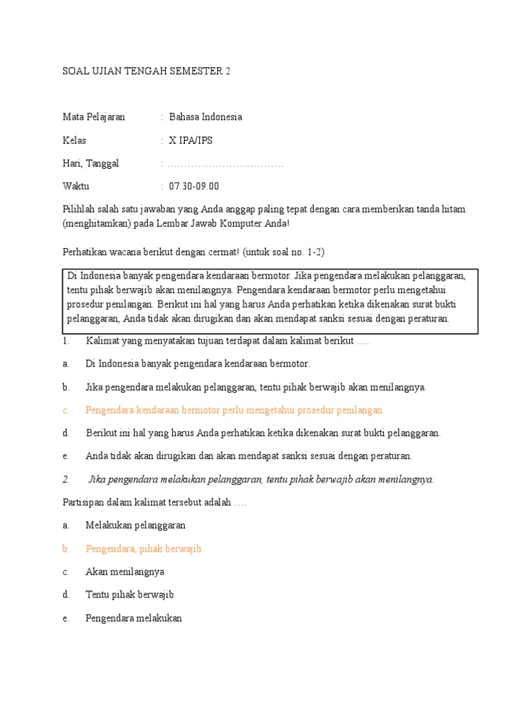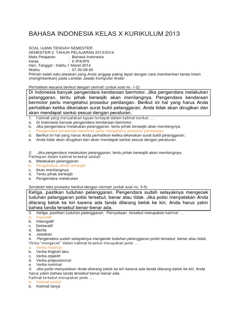 Contoh Latihan Soal Bahasa Indonesia Ujian Tengah Semester SMA Kelas X | MUDA MUDI CONDROWANGSAN