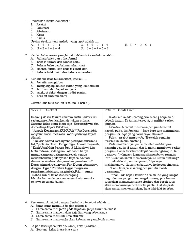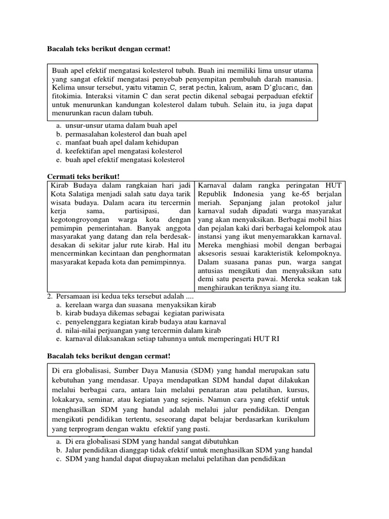 Soal Bahasa Indonesia Kelas x