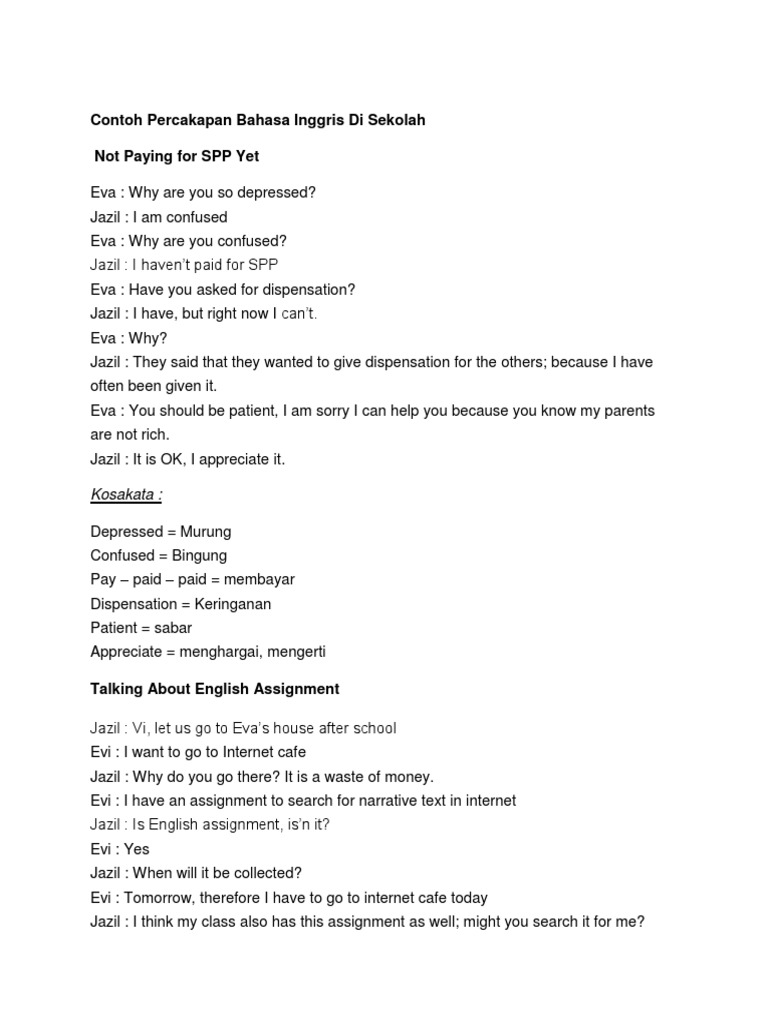 Contoh Percakapan Bahasa Inggris Di Sekolah Not Paying for SPP Yet | Business
