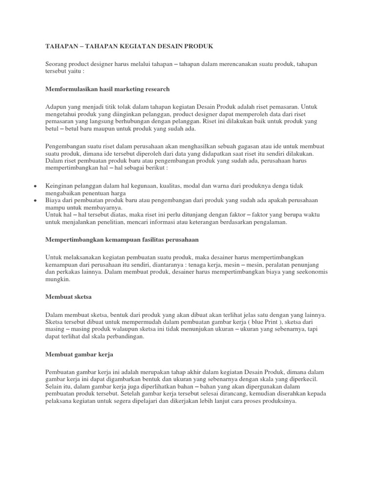 Perencanaan Dilakukan Oleh Seorang Desainer Produk Yang Diawali Dengan Kegiatan