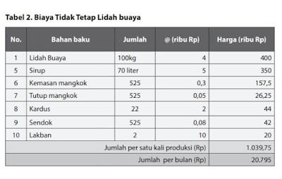 Perhitungan Biaya, Makanan Awetan, Bahan Nabati, Investasi Alat dan Mesin, Biaya Tidak tetap, Biaya Tetap, Total Biaya, Harga Pokok Produksi, Harga Jual, Penerimaan Kotor, Pendapatan Bersih