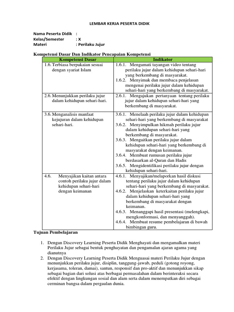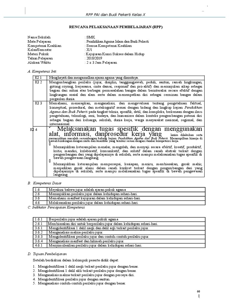 DOC) RPP SMK Pertiwi Kelas X (Sepuluh)- Perilaku Jujur.doc | Eis …