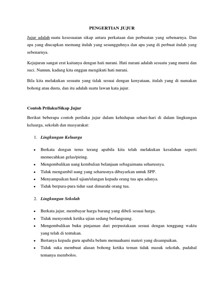 Apa yang dimaksud Sifat Jujur dalam Kehidupan Sehari-hari …
