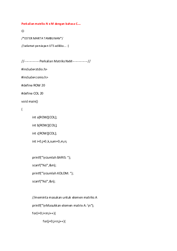 PDF) Perkalian matriks N x M dengan bahasa C | Ester Marta …