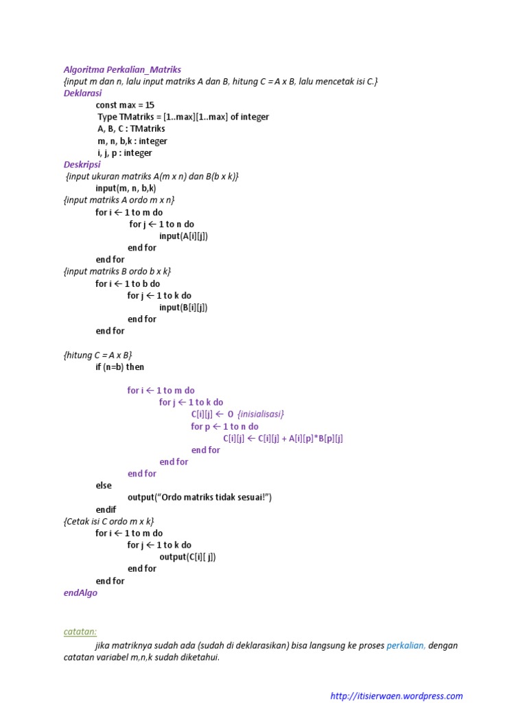 Algoritma Perkalian matriks dan Flowchart | Berbagi