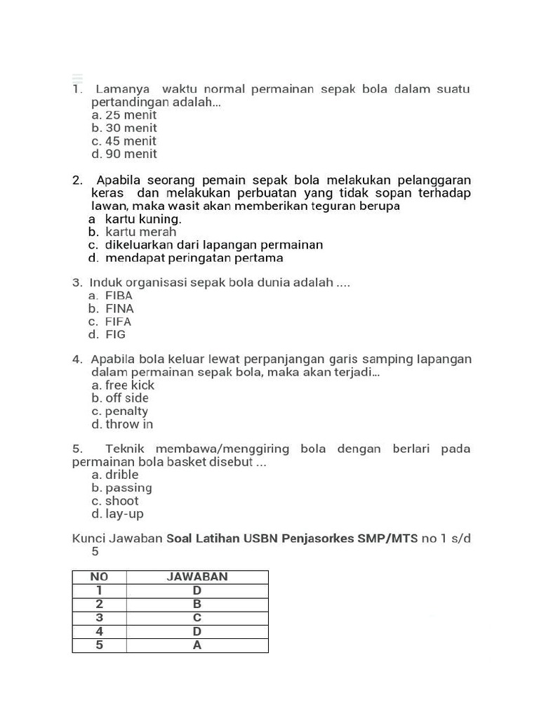 Lengkap - 40+ Teladan Soal Pat/Uas Penjaskes Kelas 9 Smp/Mts …