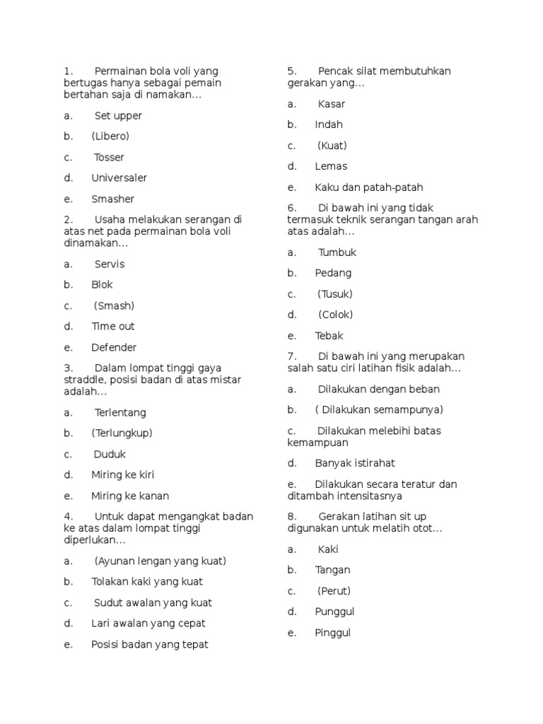 √ 100 Contoh Soal Bola Voli Pilihan Ganda & Jawabannya