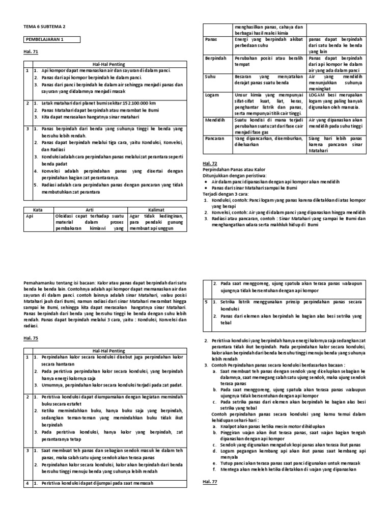 KUNCI JAWABAN Tema 6 Kelas 5 Halaman 69 71 72 75 76 77 Subtema 2 Perpindahan Kalor di Sekitar Kita - Halaman all - Tribun Pontianak