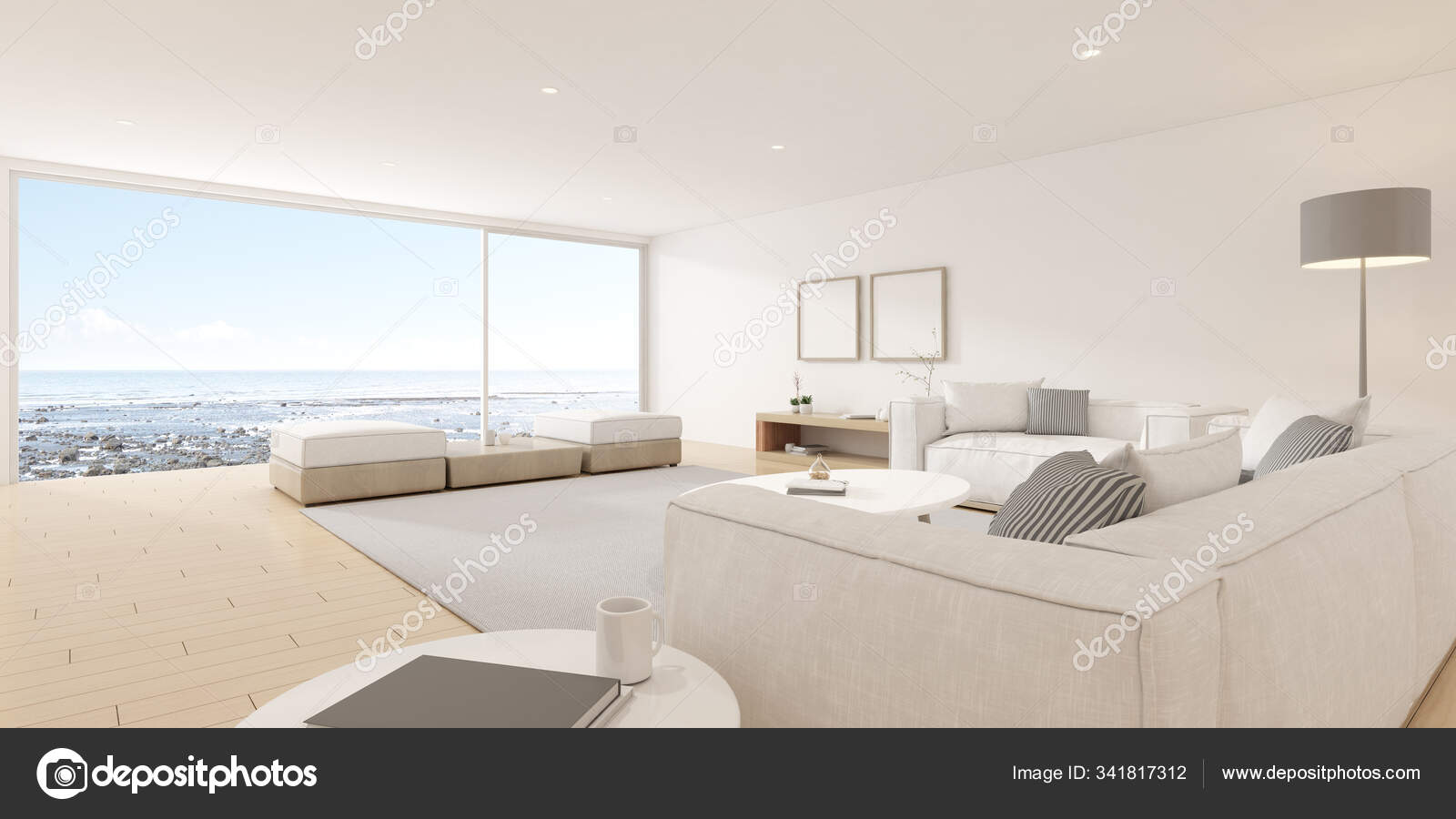 Perspektif Ruang Tamu Mewah Modern Dengan Sofa Putih Dan Meja — Stok Foto Gratis © nuchao #278823950