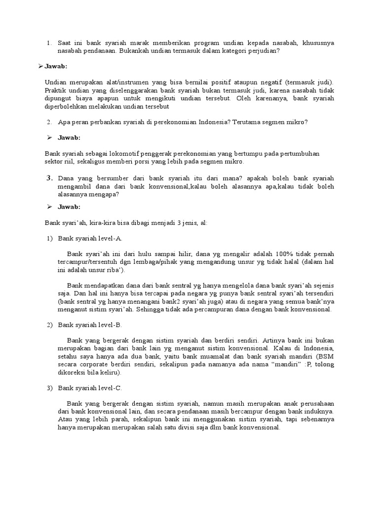 Pertanyaan tentang Bank Syariah & Kunci Jawaban Lengkap - Muttaqin id