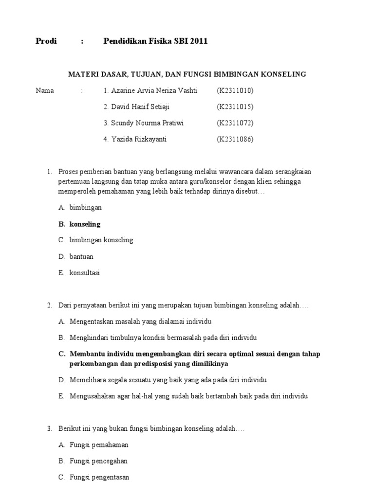 Soal Bimbingan Konseling Pilihan Ganda – IlmuSosial.id