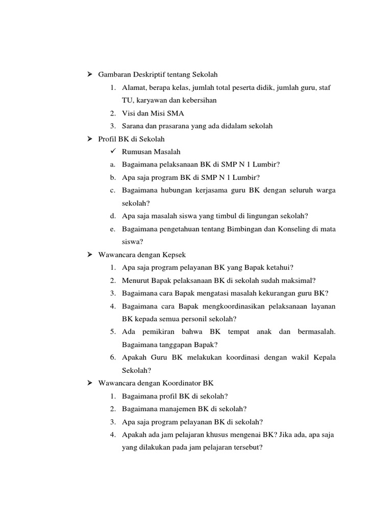 Contoh Daftar Pertanyaan Wawancara Dengan Guru BK