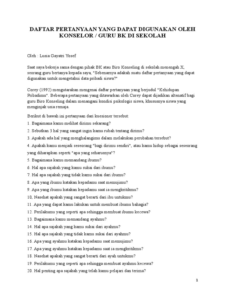 DOC) DAFTAR PERTANYAAN UNTUK GURU BK | Johan Yulianto - Academia.edu