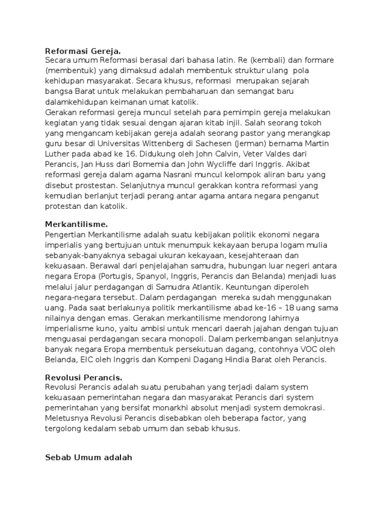 Merkantilisme Renaissance Aufklarung Reformasi Gereja Revolusi …