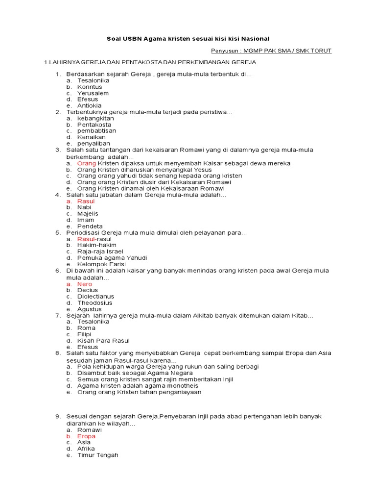 Soal Ujian Gereja