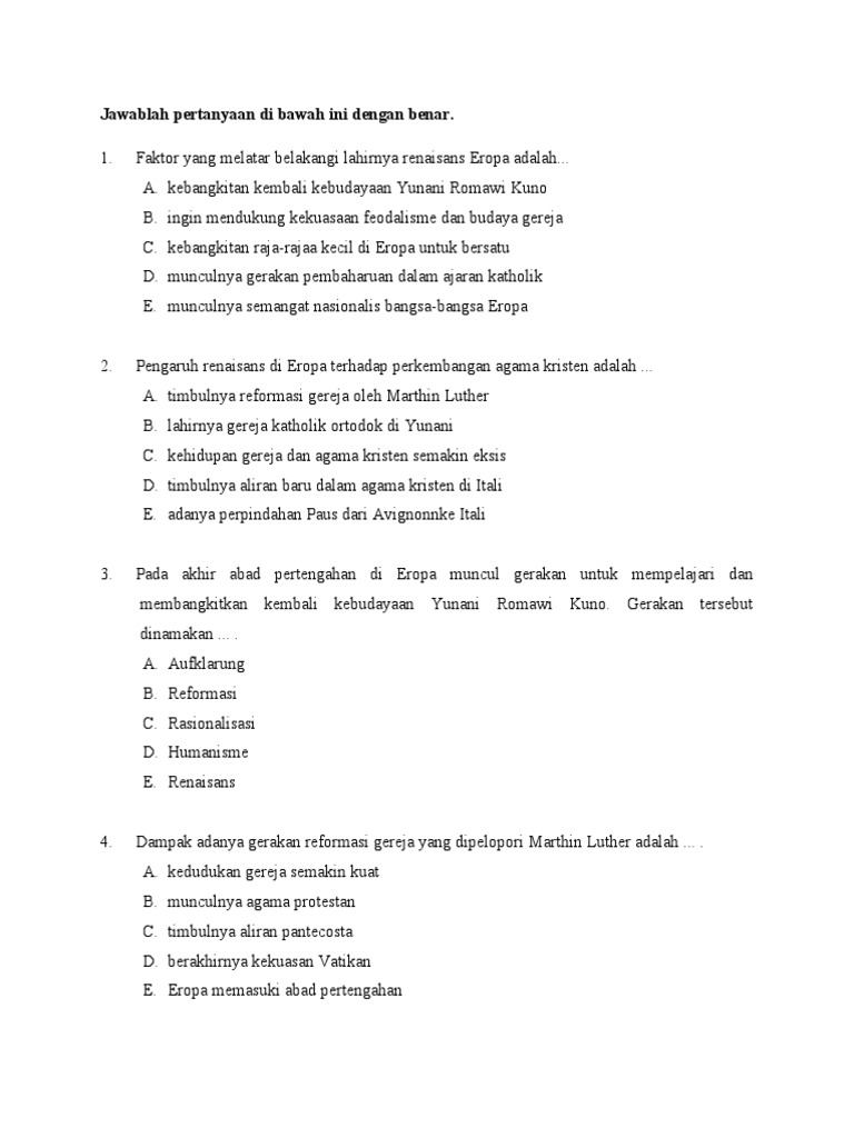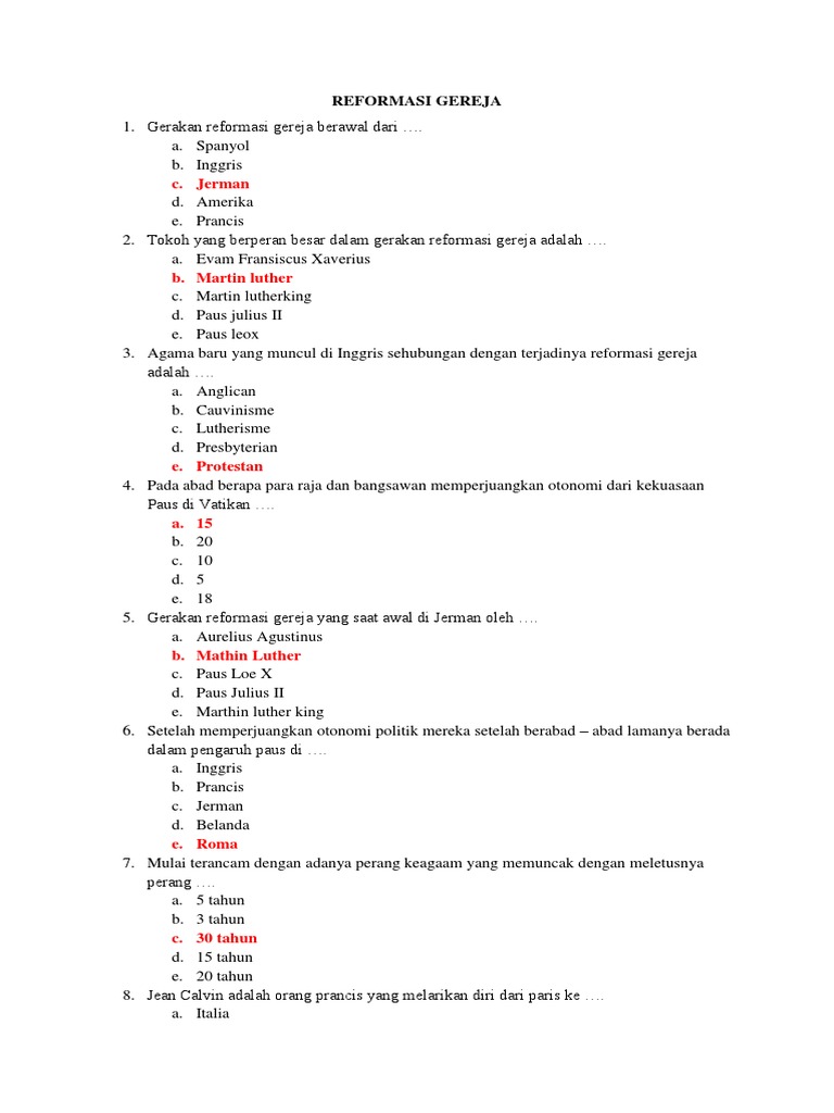 contoh soal tentang reformasi gereja - Brainly.co.id