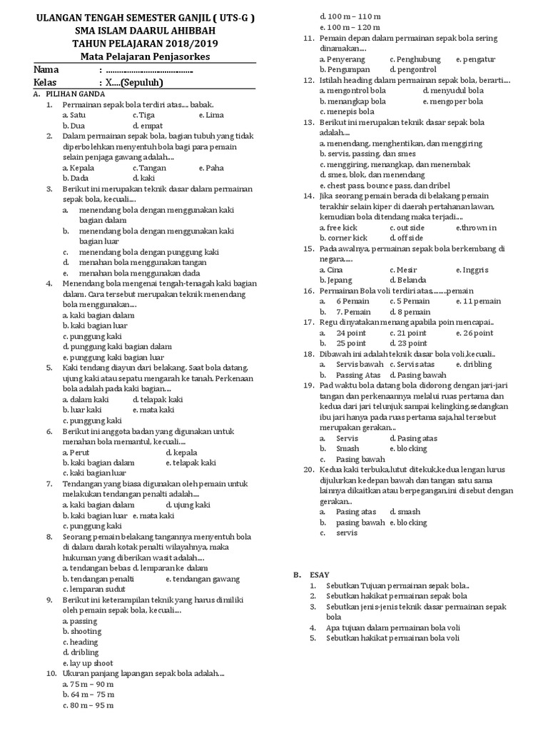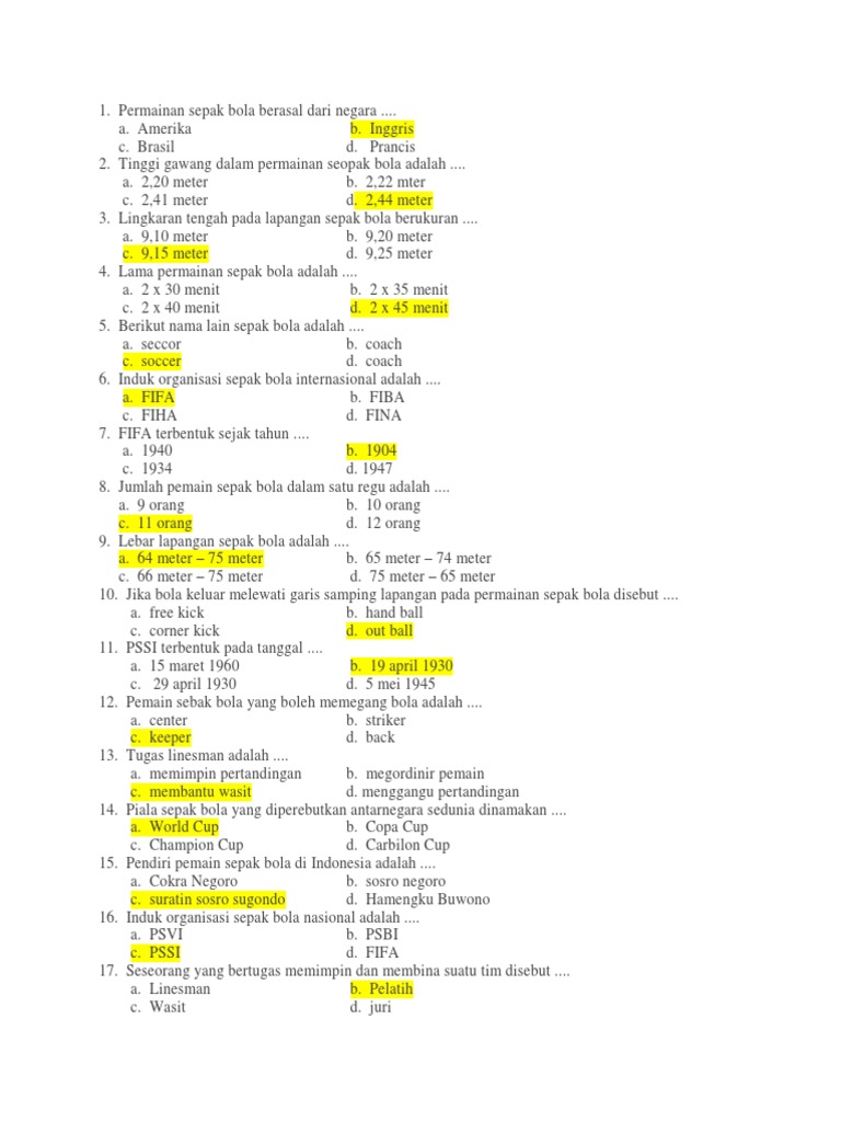 Soal Penjas Pilihan Ganda Materi Sepak Bola dan Jawaban - Ruang …