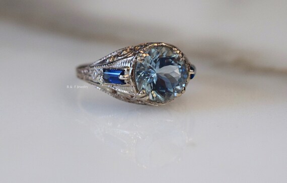 Vintage Style 14K White Gold Aquamarine And Sapphire Ring | Etsy